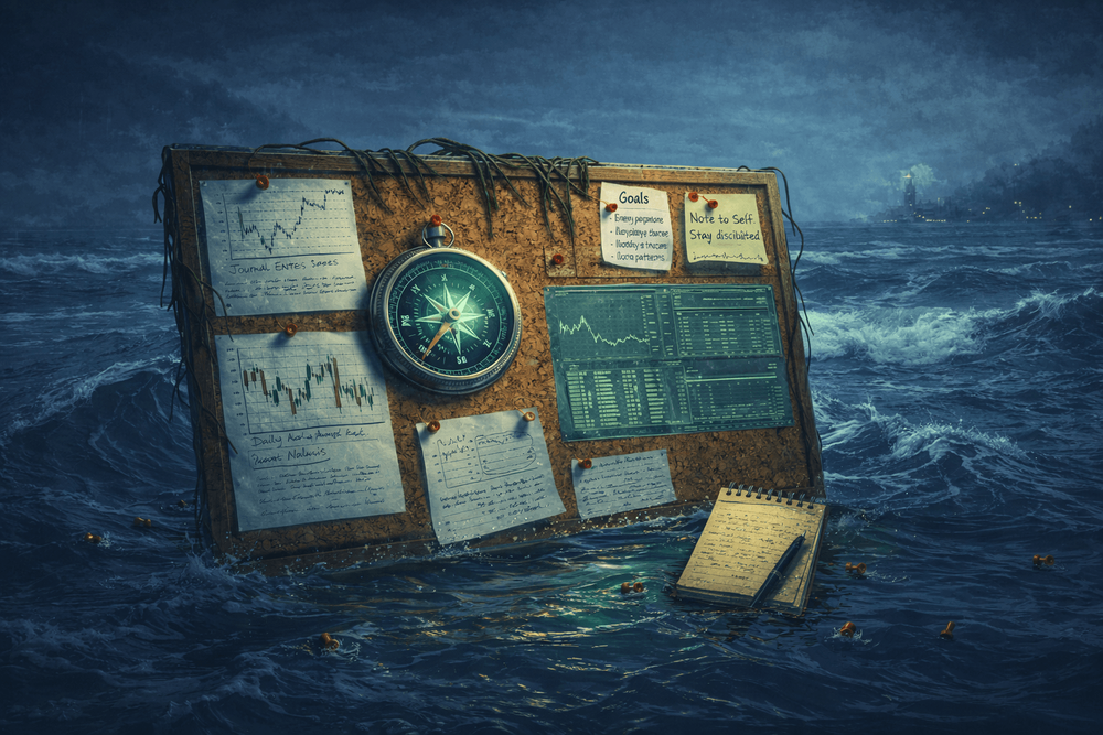 A journal isn't a diary. It's a feedback loop. Recording what you traded and why (the setup, the emotion, the conviction level) creates the raw material for genuine improvement.