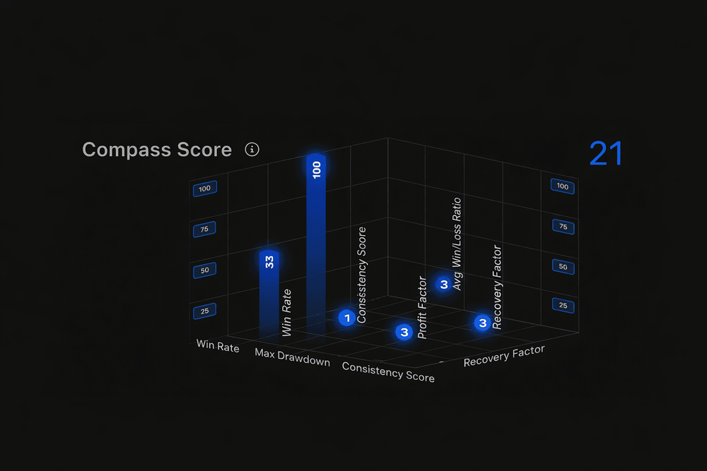 The Compass Score is a single number from 0 to 100 that measures not just whether you're profitable, but whether you're trading well, across six dimensions.